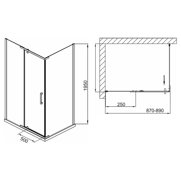 1. Распашные душевые уголки