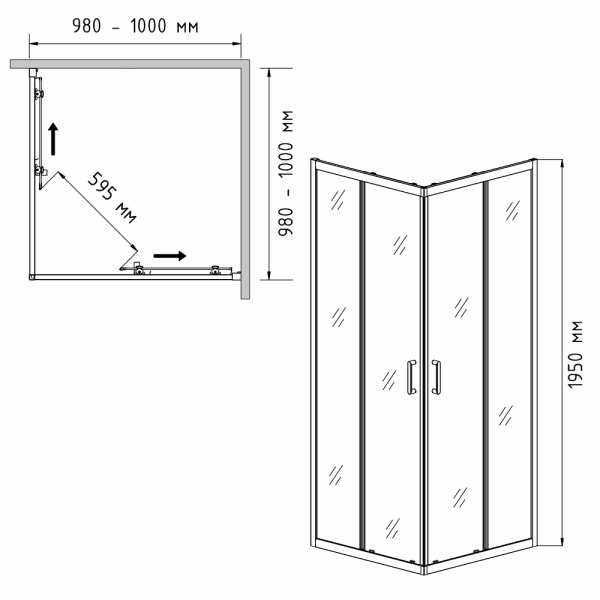 Идеальны для небольших ванных комнат. Двери открываются по направляющим, что экономит место и позволяет пользоваться уголком, не загромождая пространство.