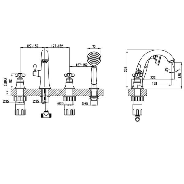Смеситель для ванны и душа Cezares Margot MARGOT-VM-02-M бронза Смеситель для ванны и душа Cezares Margot MARGOT-VM-02-M бронза Смеситель для ванны и душа Cezares Margot MARGOT-VM-02-M бронза
