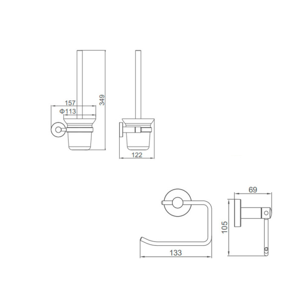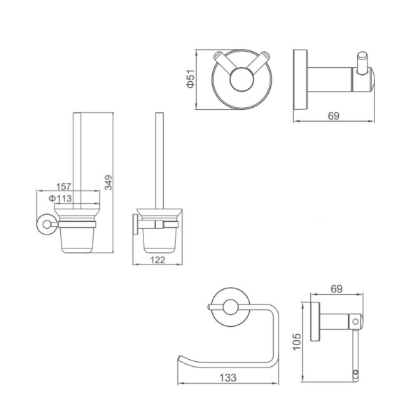 Набор Accoona 121 нержавеющая сталь Ершик+Дозатор+Бумагодержатель открытый+Полотенцедержатель-кольцо