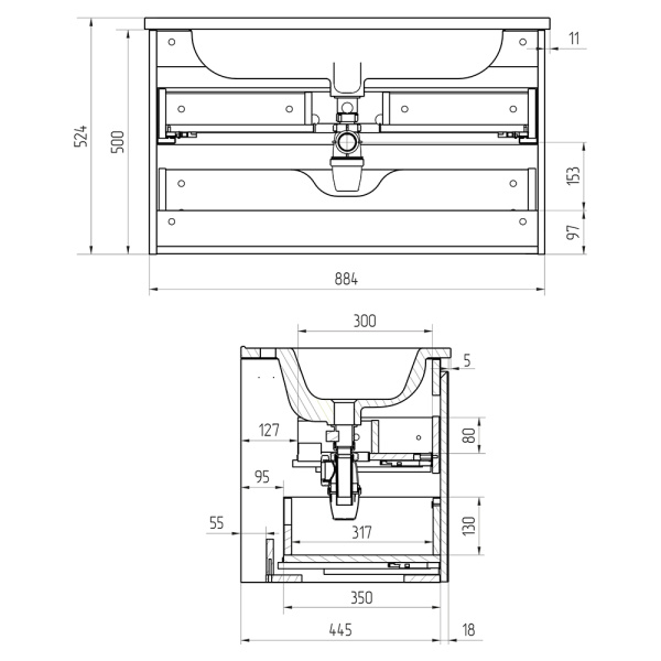 2. Врезные. Монтаж в отверстие с полным скрытием раковины под столешницей.
