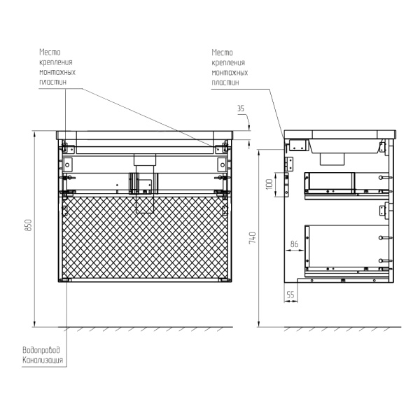 3. Полувстраиваемые. Частичное погружение раковины в тумбу.