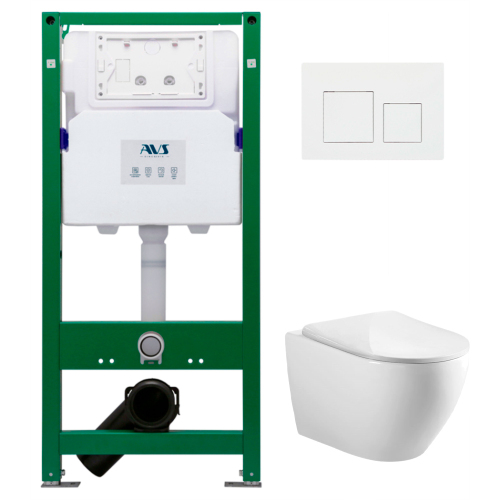 Комплект 3в1: Инстал д/унитаза с отв.для дез.таблеток + клавиша Белая квадратная + унитаз Сатурн AVS
