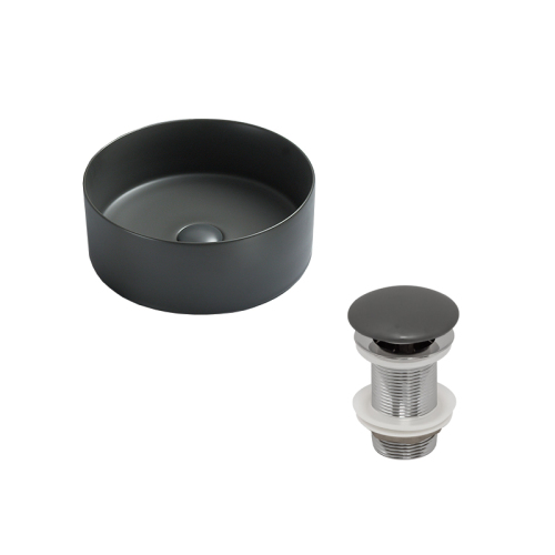 Раковина AVS Лилиан 36x36 темно-серая матовая с донным клапаном