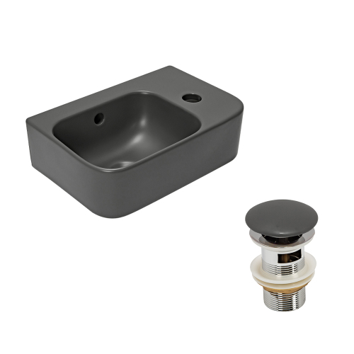 Рукомойник AVS Грэйс 37x25 L, темно-серый матовый с донным клапаном