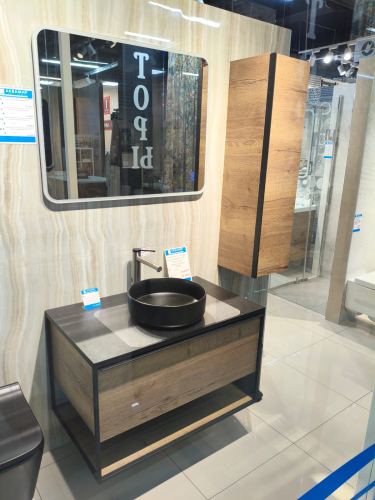 /Тумба 900 1ящ подвес со столешницей HPL + Пенал Аттик древесный Steal JORNO