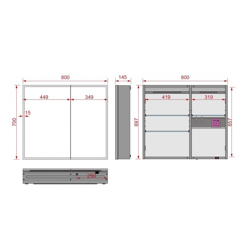 Зеркальный шкаф 800*700 LED ИК-датчик Антипар дверцы внутр ЗЕРКАЛЬНЫЕ Розетка ESBANO