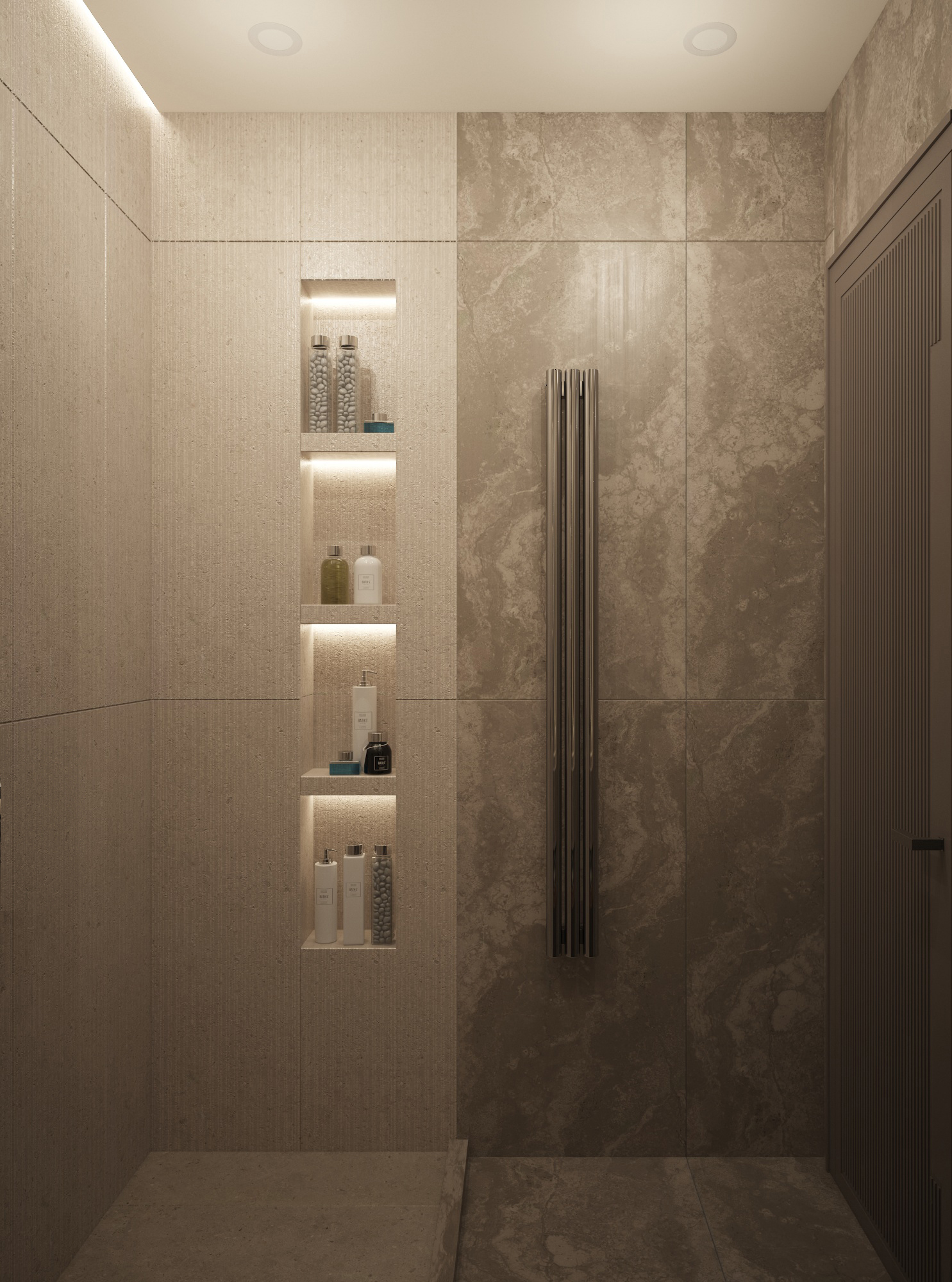 Дизайн-проект в ЖК Любимово 18, небольшая ванная комната в двухкомнатной квартире.