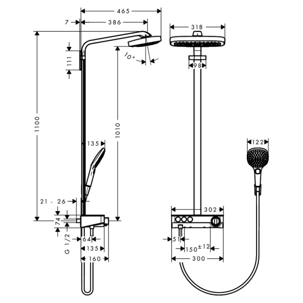 Душевая стойка Hansgrohe Raindance Select E 300 3 jet Showerpipe 27127400 хром/белый