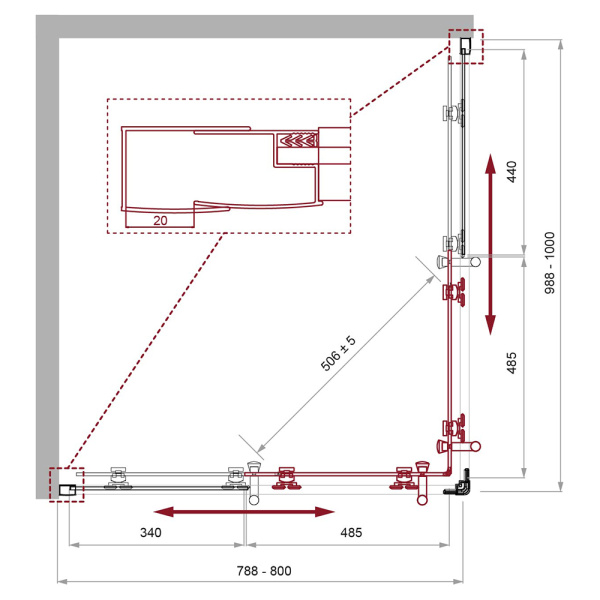 Идеальны для небольших ванных комнат. Двери открываются по направляющим, что экономит место и позволяет пользоваться уголком, не загромождая пространство.