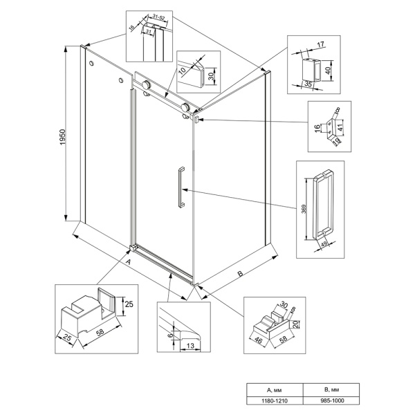 Идеальны для небольших ванных комнат. Двери открываются по направляющим, что экономит место и позволяет пользоваться уголком, не загромождая пространство.