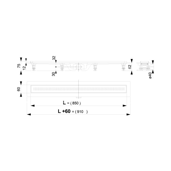 CH650KC Желоб бок/слив d40 решётка нерж.ЧЁРНАЯ 650 мм KLASIK MCH