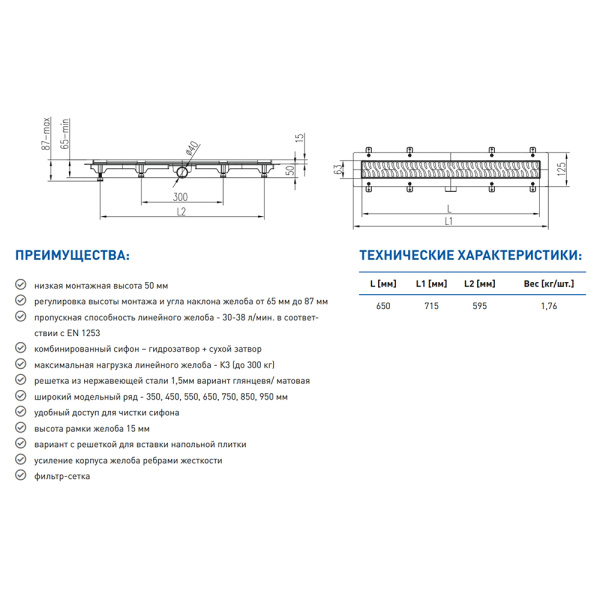 Водоотводящий желоб 650 Harmony MCH с сеточками CH 650 H сет