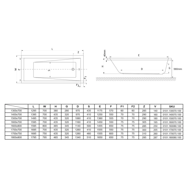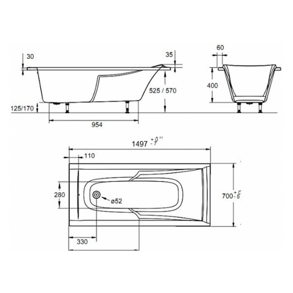 Формы и размеры ванн