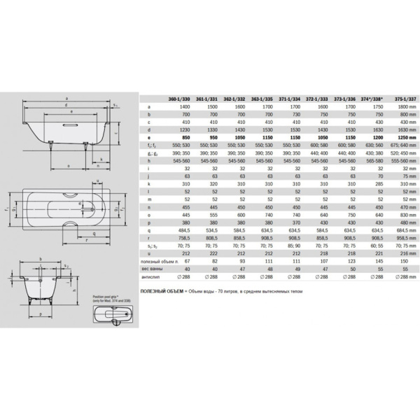 Размеры ванн варьируются от компактных (120-140 см в длину) до больших (более 170 см), что позволяет выбрать модель под любую площадь. В каталоге указаны точные габариты каждой ванны, что упрощает выбор.