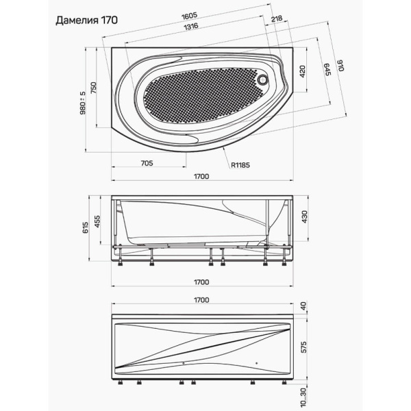 Акриловая ванна 10° 170х100 L Ravak C811000000