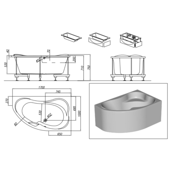 Мы предлагаем ванны разных форм, чтобы каждая модель идеально подходила под особенности интерьера и площади ванной комнаты: