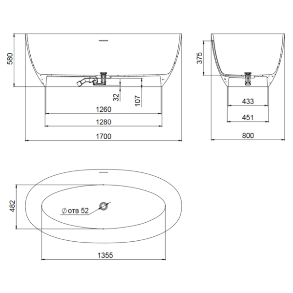 Ванна из искусственного камня U-Solid NOA LIGHT 1700*80 отдельностоящая матовая UMY