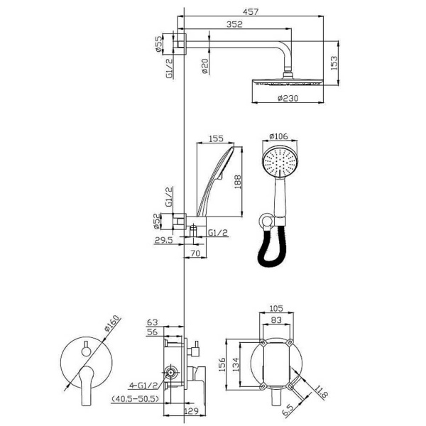 Встраиваемые душевые комплекты